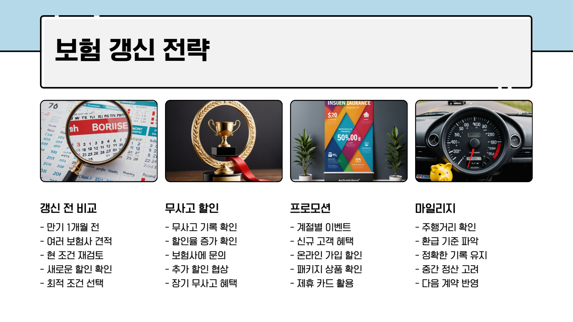 ✔ 보험 갱신 전 프로모션과 할인 혜택 확인